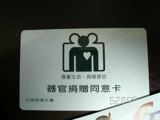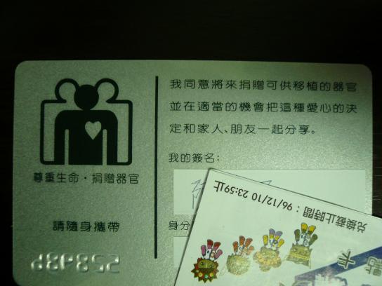 寫著「在適當的機會把這種愛心的決定和家人、朋友一起分享」